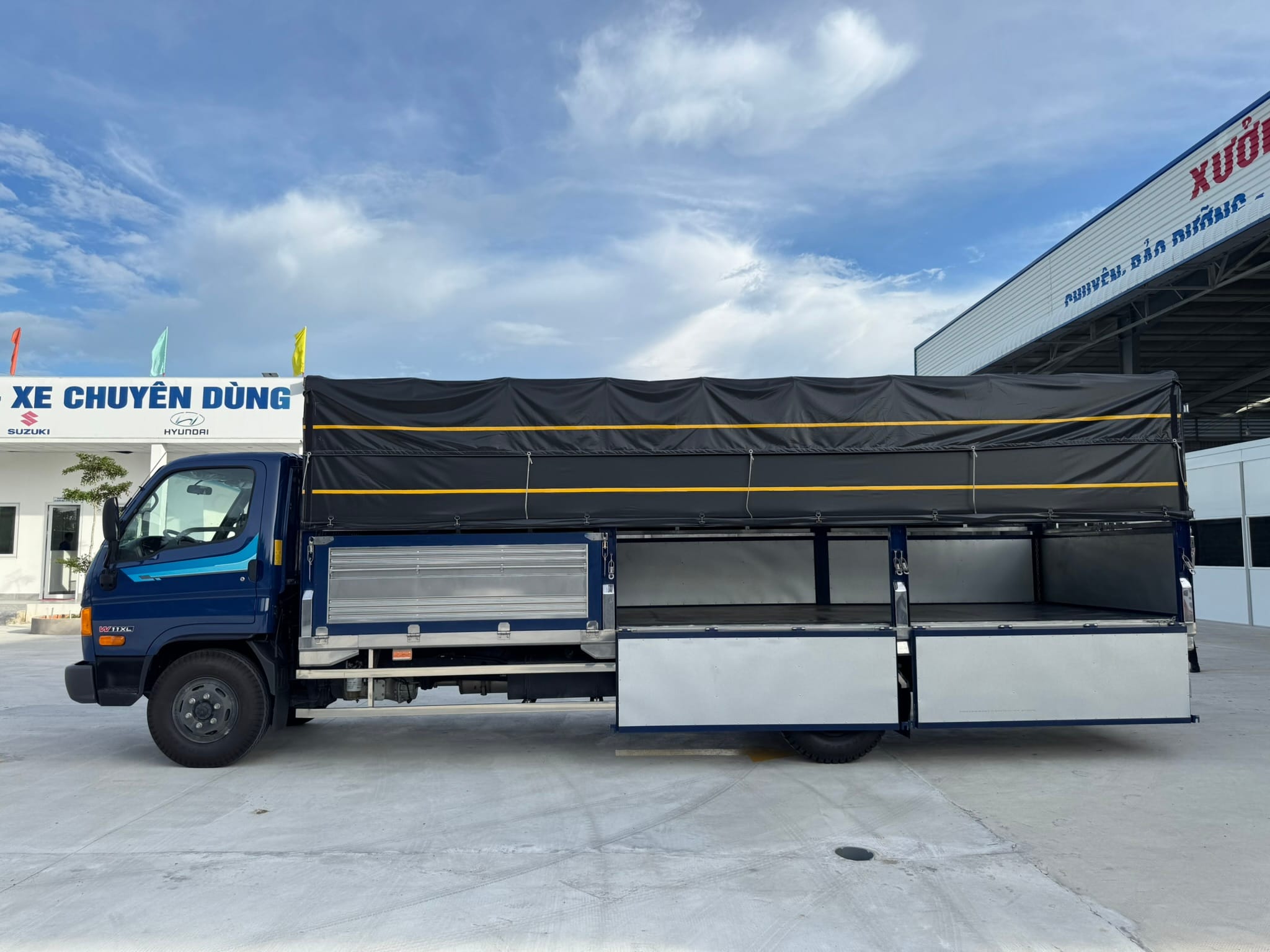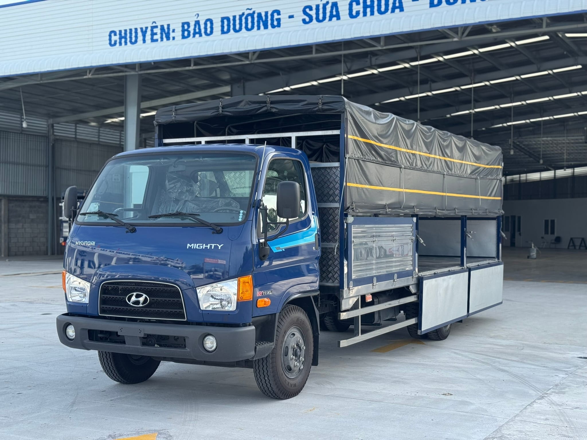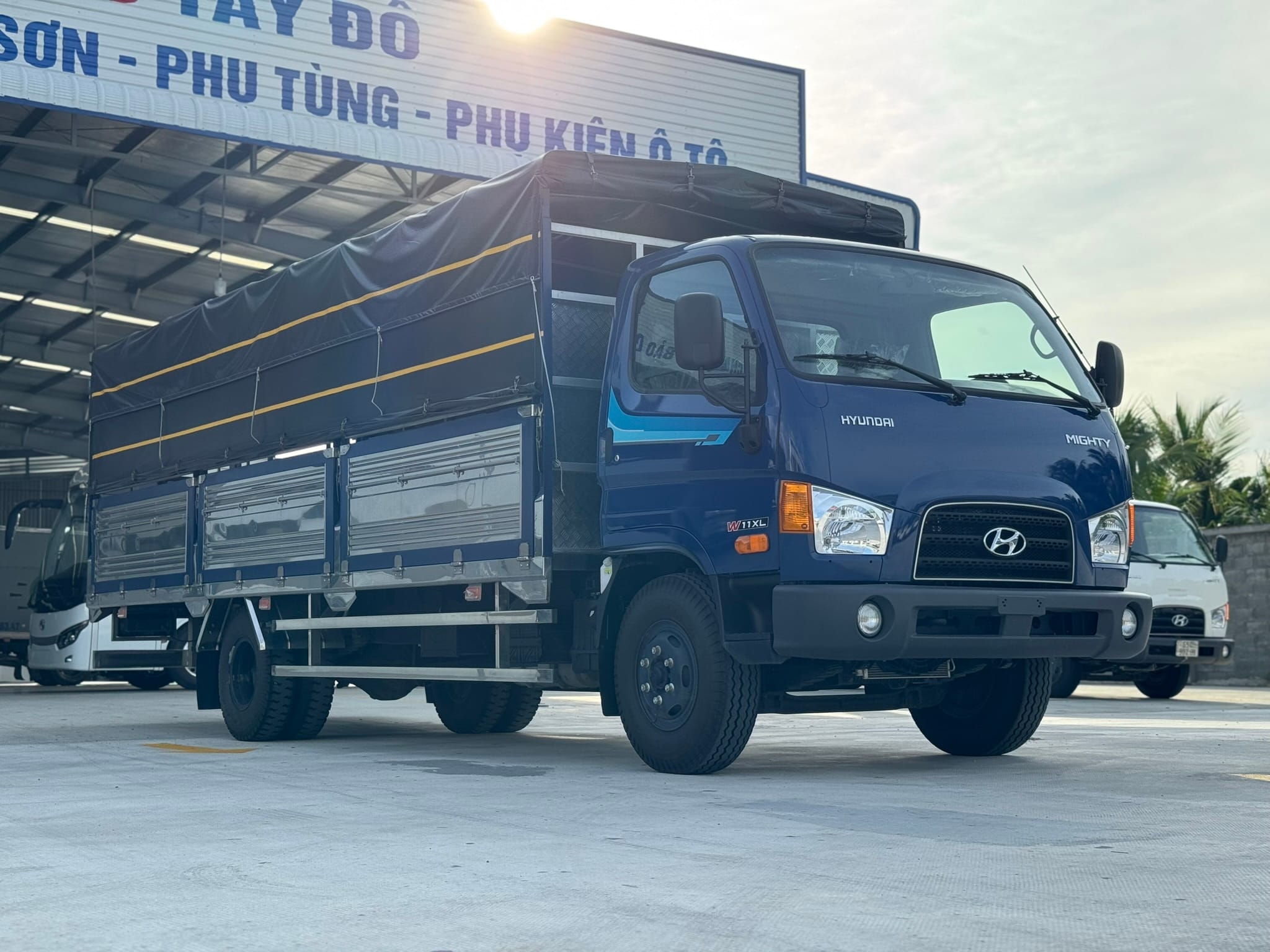 Hyundai Mighty W11XL – Thùng mui bạt tiêu chuẩn là dòng xe tải hạng trung, tải trọng 6.6 tấn, trang bị thùng dài 6.27 m, phù hợp cho nhu cầu vận chuyển hàng hóa khối lượng lớn. Xe sử dụng động cơ D4GA Diesel 3.9L Euro 5 tiết kiệm nhiên liệu, khung gầm bền bỉ, đáp ứng tiêu chuẩn khí thải mới nhất.