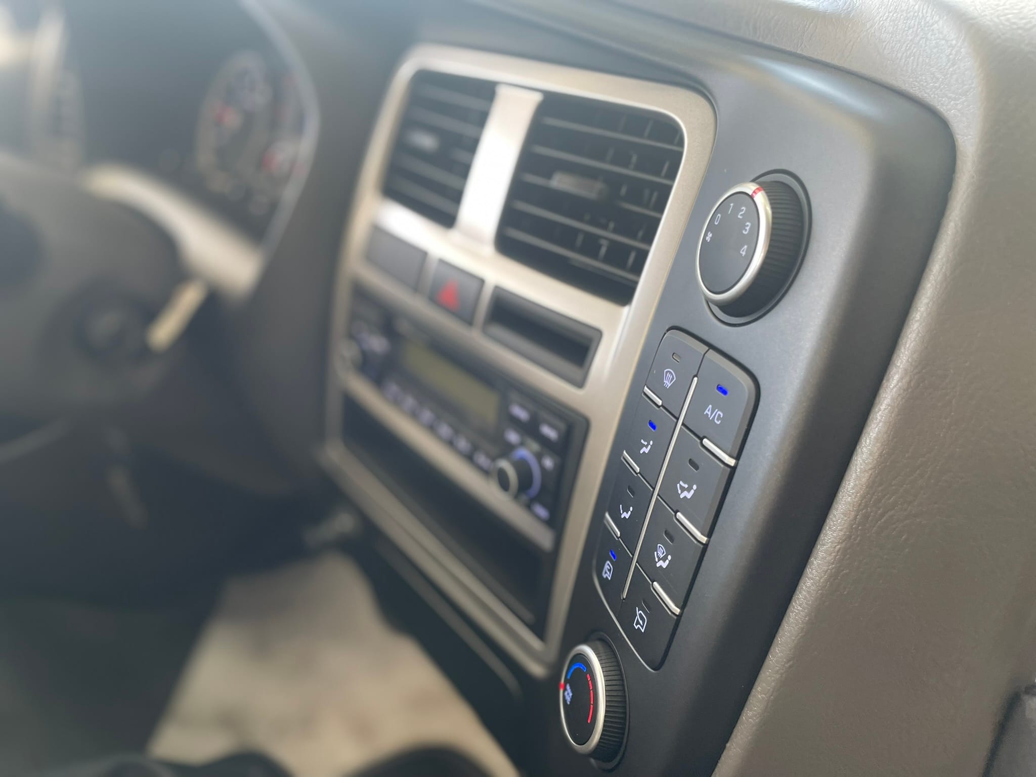 • Ghế lái điều chỉnh vị trí, có tay lái trợ lực, điều hòa, audio AM/FM + USB + Bluetooth, hốc để cốc và kính.